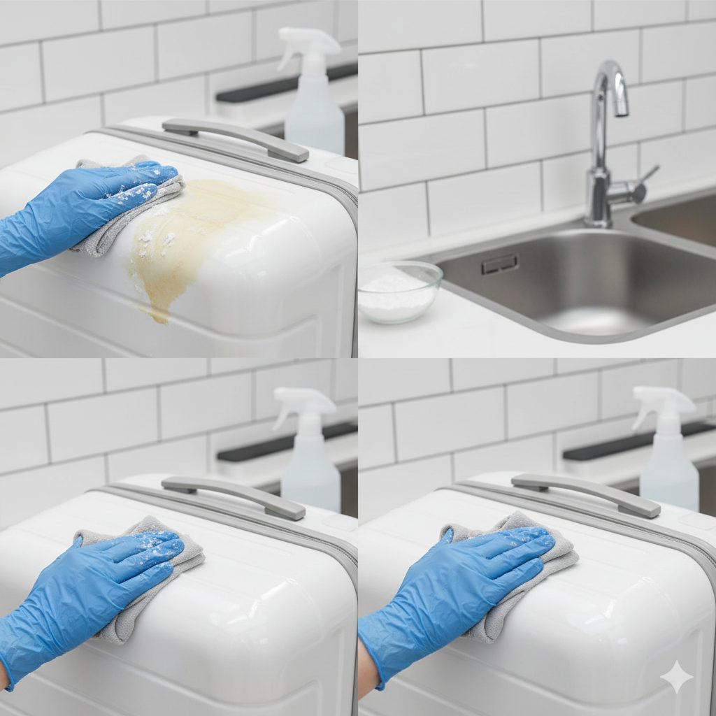 白いスーツケースを長期間使用していると、紫外線や汚れの蓄積によって徐々に黄ばんでくることがあります。この黄ばみは、通常の水拭きだけではなかなか落とすことができません。