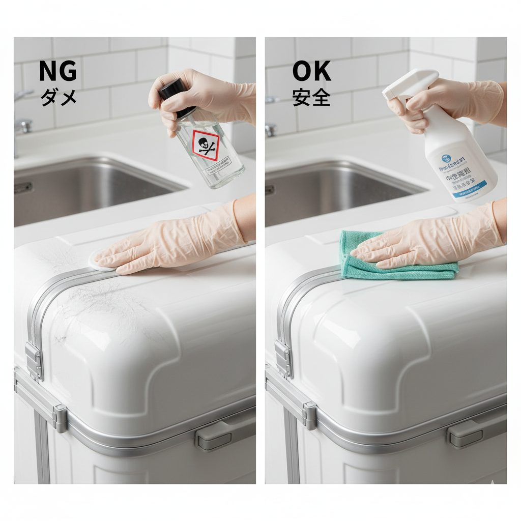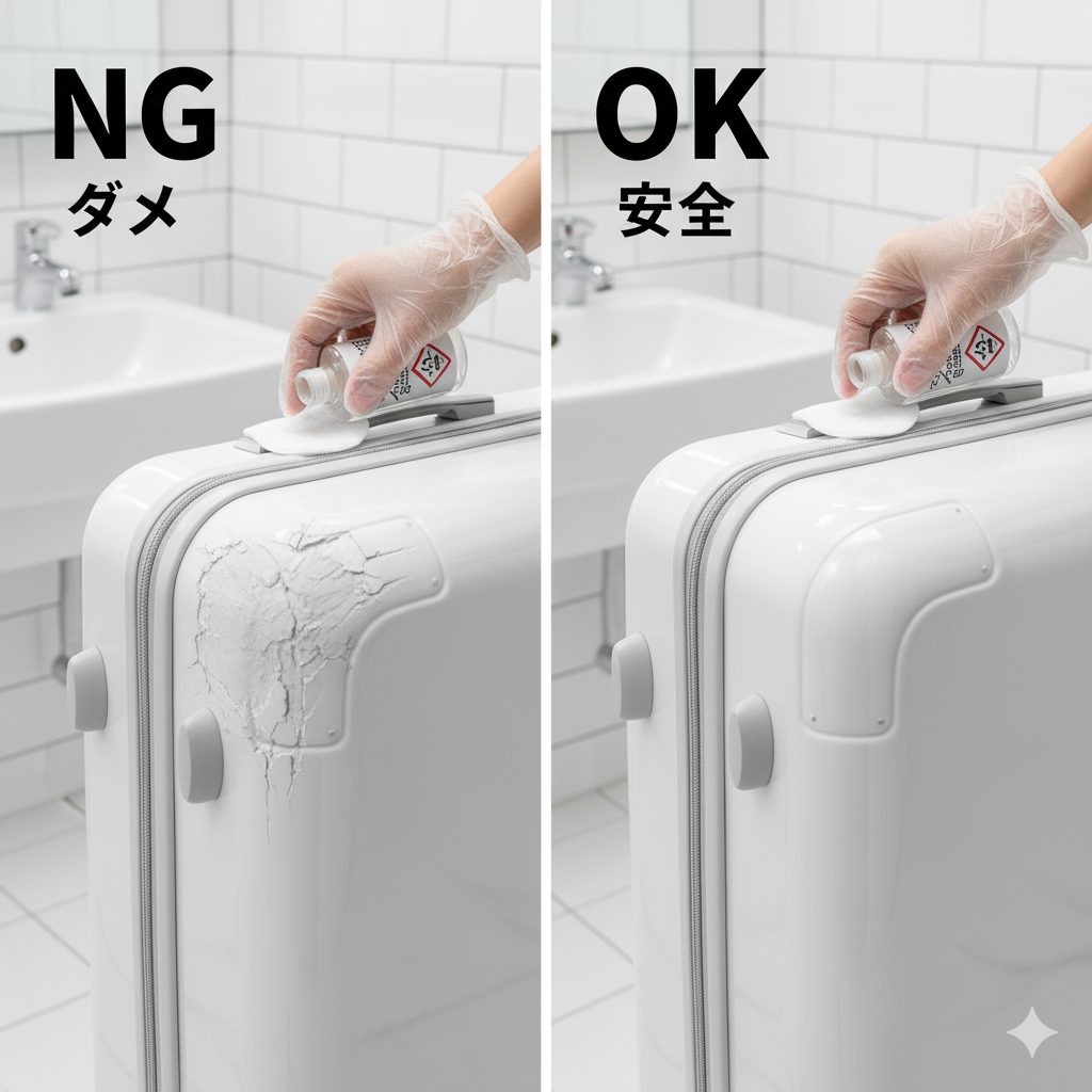 どうしても試したい場合は、スーツケースの底面や内側の目立たない部分で必ずパッチテストを行ってください。しかし、基本的には「使用しない」という選択をおすすめします。