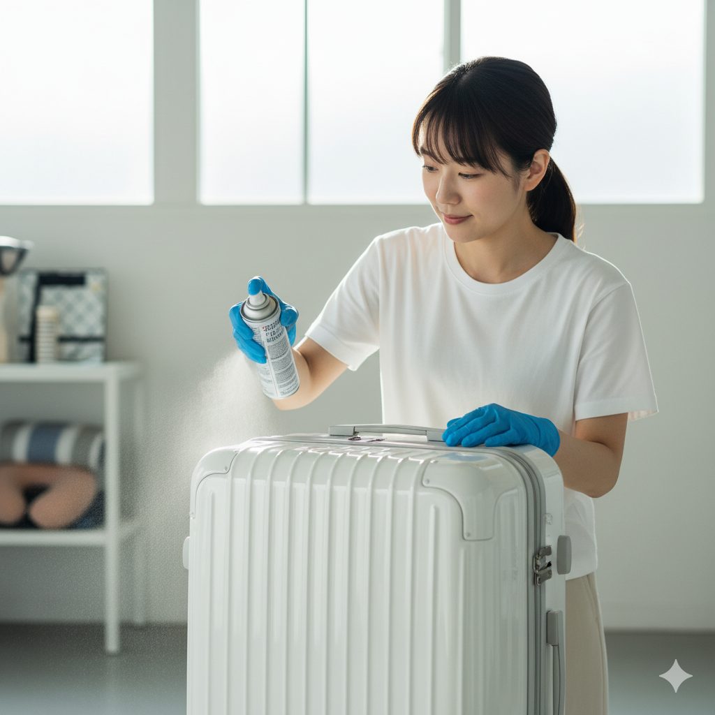 特に旅行前には、キャスター周りや底面など、汚れやすい部分に念入りにスプレーしておくと安心ですよ。製品の注意書きをよく読み、換気の良い場所で使用してくださいね。