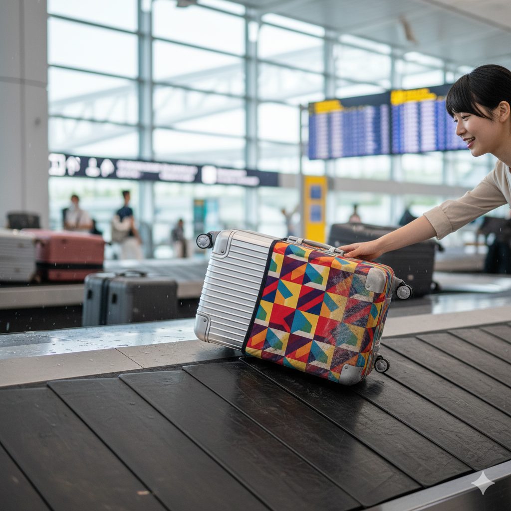 - 識別効果:空港のターンテーブルなどで、似たようなスーツケースの中から自分のものを見つけやすくなります。派手な色や柄のカバーは、取り間違いの防止に非常に効果的です。
