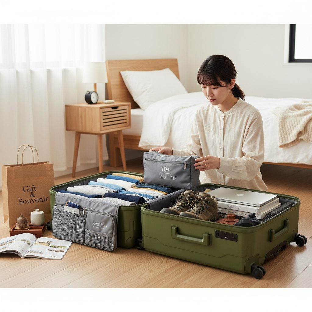 また、現地でお土産をたくさん購入する予定がある方も、最初から少し余裕のあるサイズを選ぶか、拡張機能付きのモデルを検討すると良いでしょう。