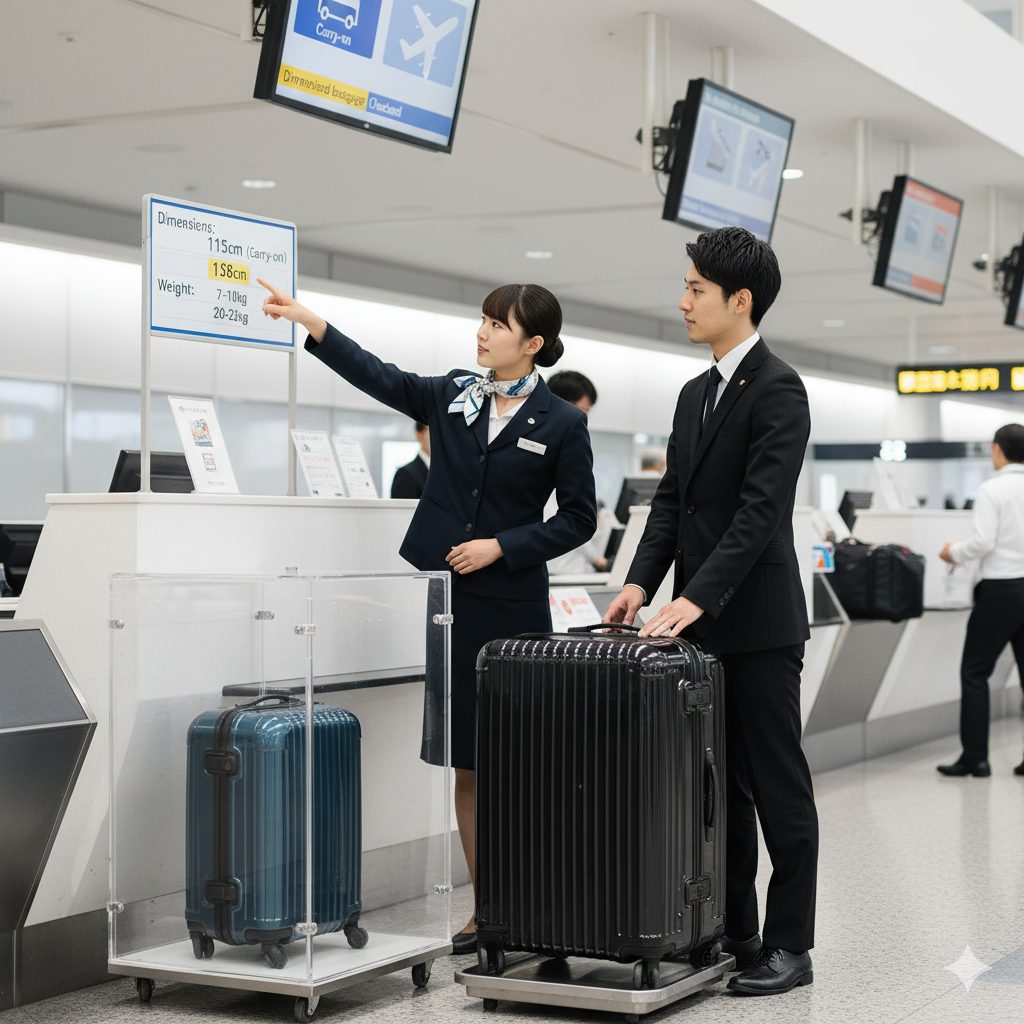 スーツケースの大きさを選ぶ上で、絶対に無視できないのが航空会社の荷物に関する制限です。この規定を知らないと、空港で追加料金を支払うことになったり、最悪の場合、荷物を預かってもらえない可能性もあります。